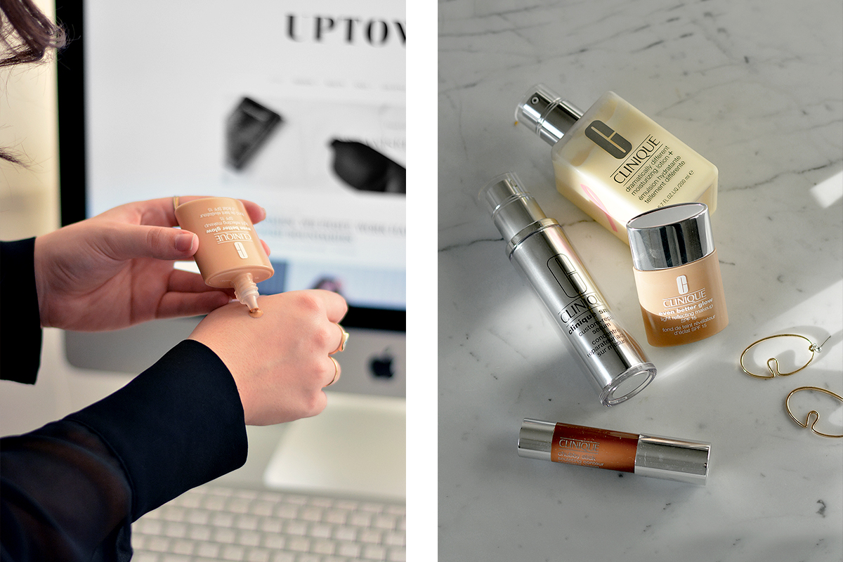 Image 1: Even Better Glow Light Reflecting Makeup SPF 15 / Image 2: Sculpting Contour Chubby Stick, Clinique Smart Custom Serum, Dramatically Different Moisturizing Lotion