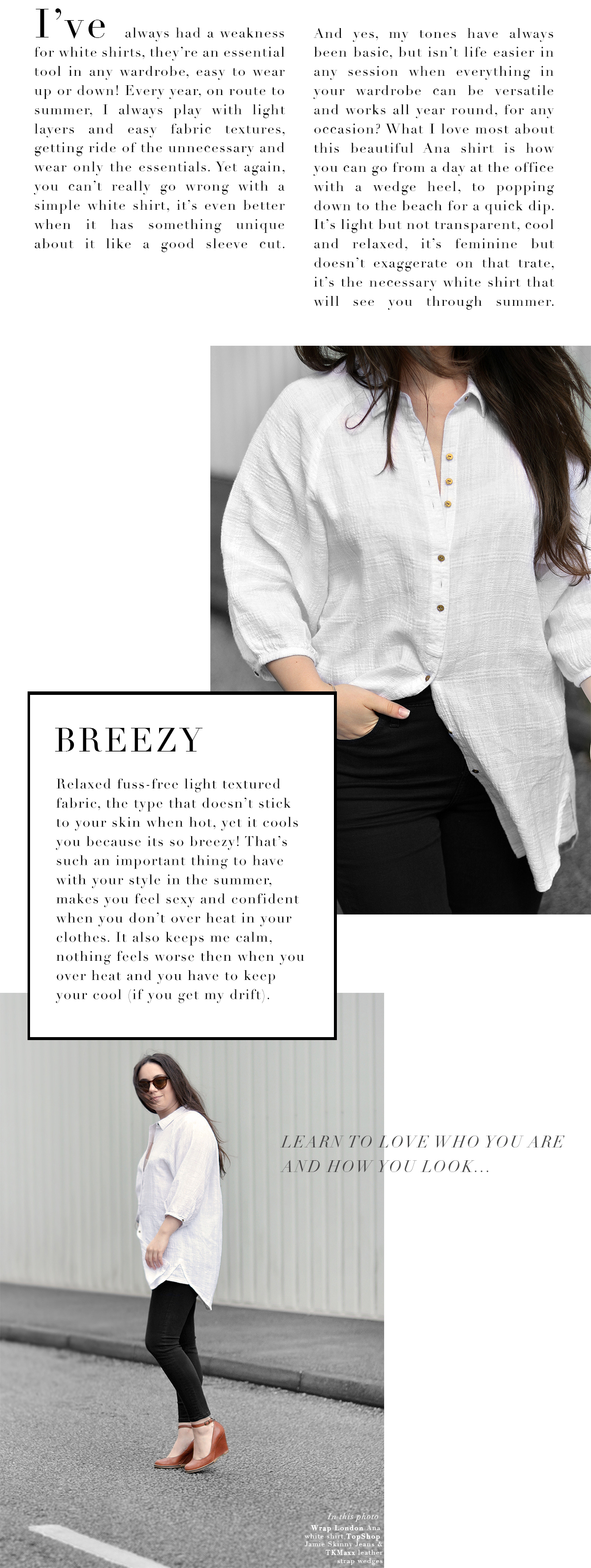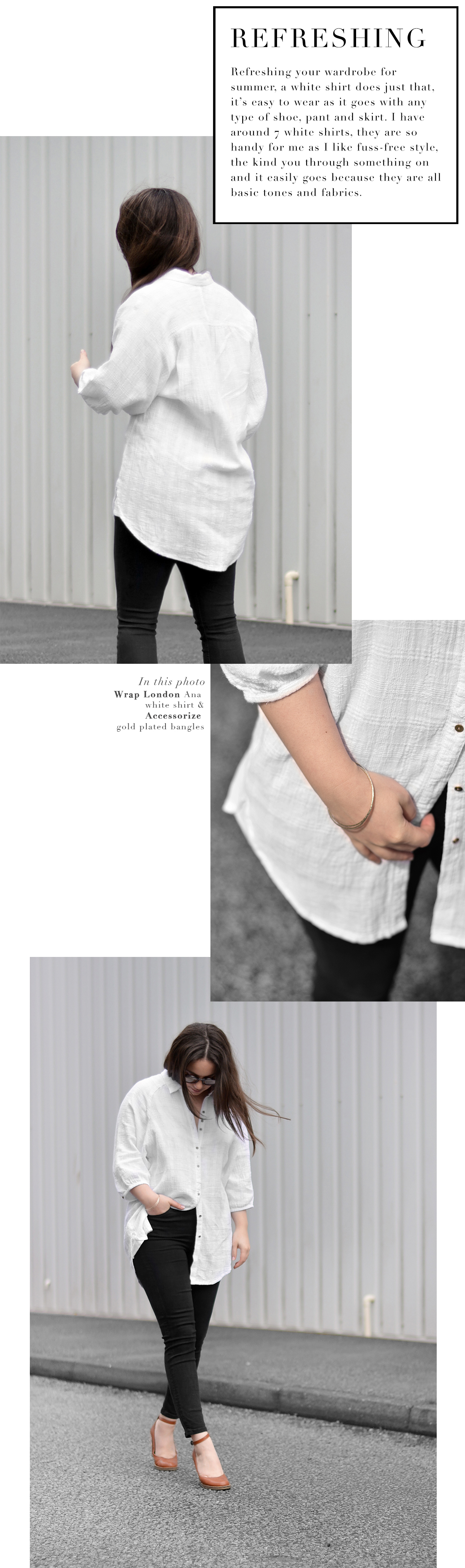 This is my simple way to refreshing your wardrobe for summer, a white shirt, it’s easy to wear as it goes with any type outfit. Here’s how to relax, refresh, recharge your style by adding one item to your wardrobe.