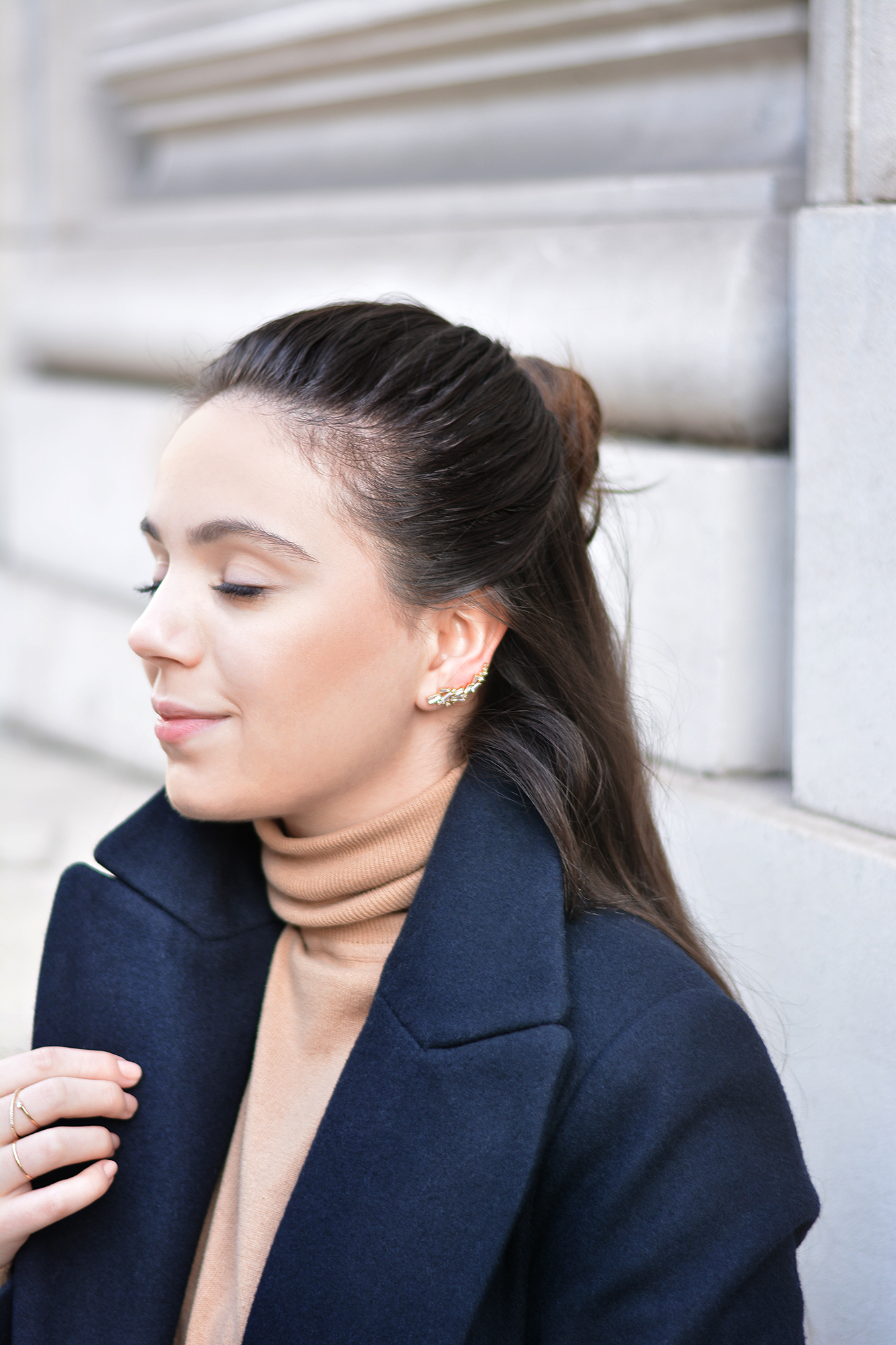 Wearing Zara turtle neck and coat, similar here and here. Rue Gembon DAANIKA EARCUFF SET (more styles here) & delicate wrap gold ring (similar here)