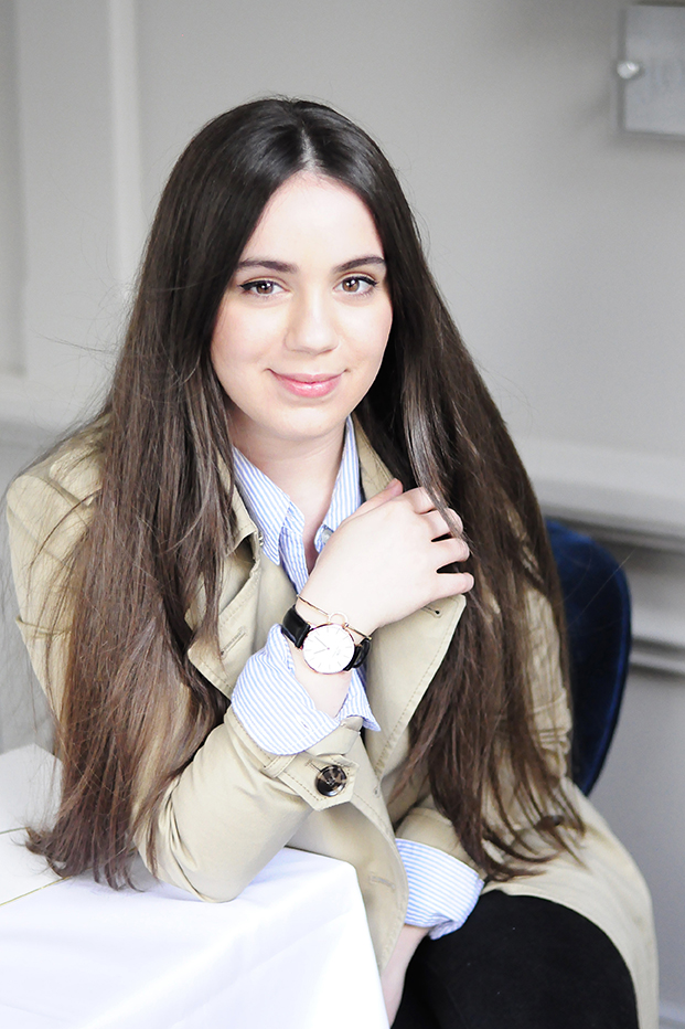 Daniel Wellington black and gold watch, enter code UPTOWNSTYLE at check out on www.danielwellington.com to get a beautiful 15% off your purchase until May 31st.
