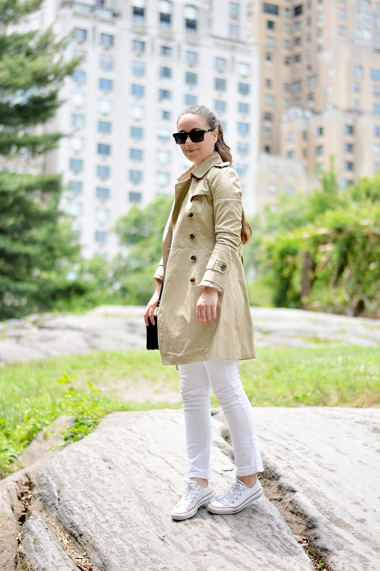 Wearing: Banana Republic trench coat, TKmaxx white jeans, white Converse, Paul Costelloe cross body bag, Storm sunglasses, M&S basic white t-shirt & next leather belt.